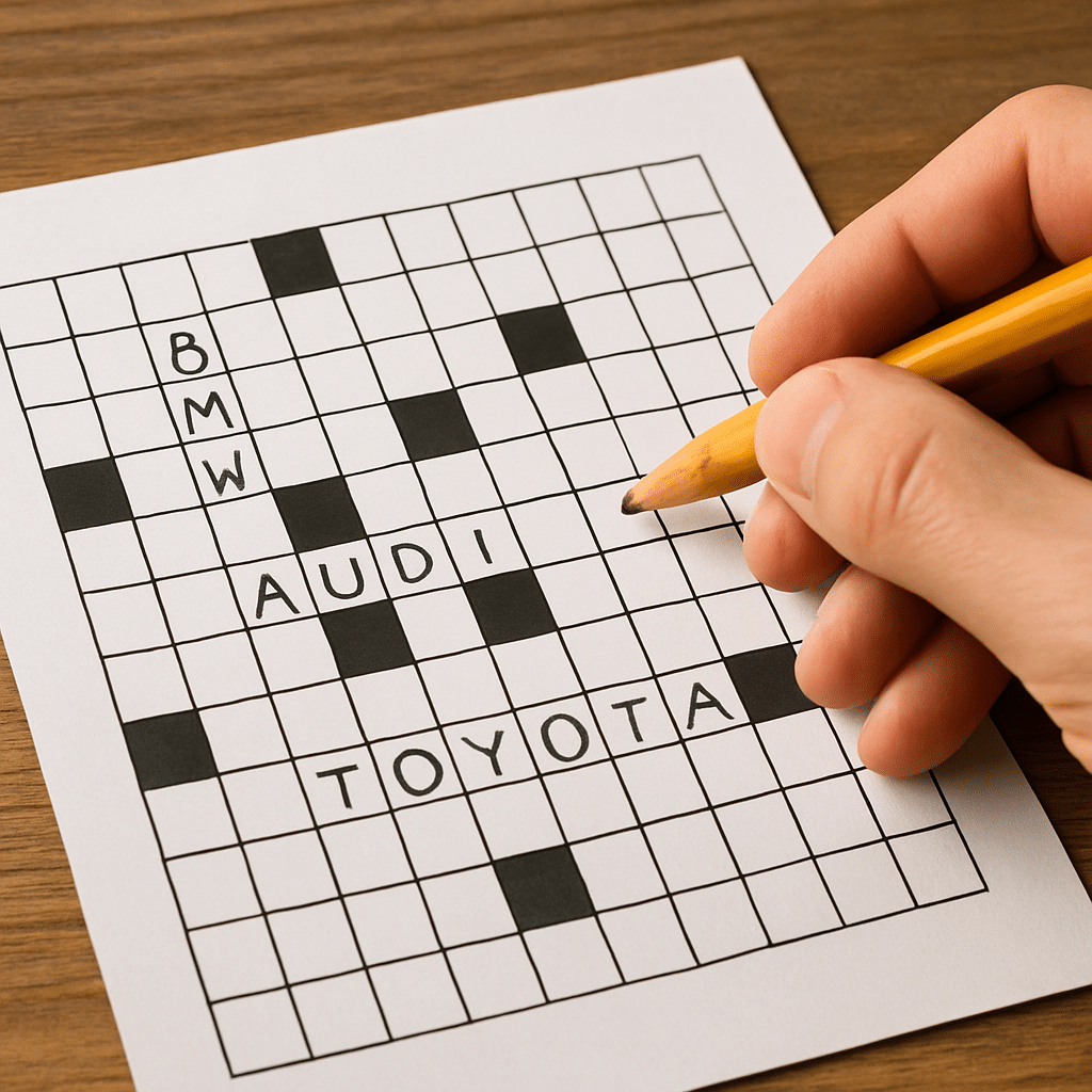 Bilmærker optræder tit i krydsord, fordi de er én af de mest universelle ledetråde. De er internationalt kendte, korte i stavelse, og spænder bredt – lige fra tyske klassikere til japanske favoritter og danske eller østeuropæiske specialiteter. Et bilmærke passer også ofte perfekt ind, når antallet af bogstaver skal gå op. Derudover kan kendingsbogstaver for biler, modelnavne eller blot ord som “brand” sommetider optræde som erstatning, men det mest almindelige er stadig navnet på selve bilmærket.