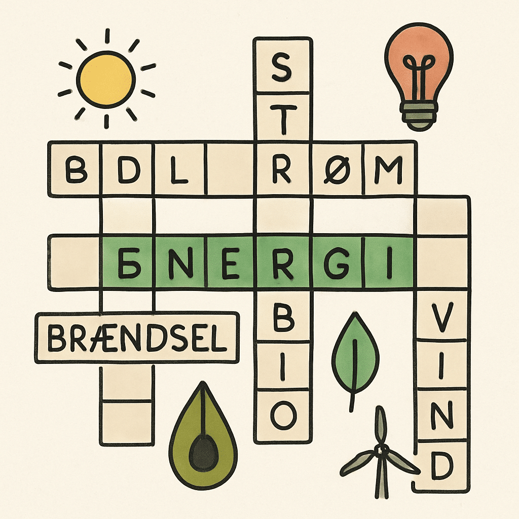 Krydsord med et naturfagligt twist indeholder ofte energi-relaterede begreber. Eksempler: