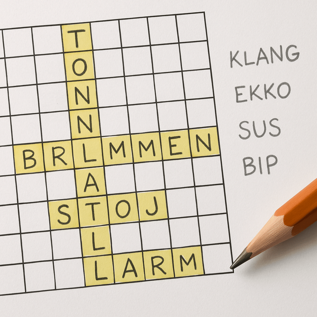Ofte kan du også tænke meget kreativt i forhold til bøjningsformer og beslægtede ord – fx Lydløs (hvis Krydsordet kræver det modsatte), Lytte, eller Lydig. Selvom ikke alle dækker 1:1 over “lyd”, så kan de i en knibe løse en vanskelig ledetråd, især når der bliver tænkt ud af boksen med ordfamilien.